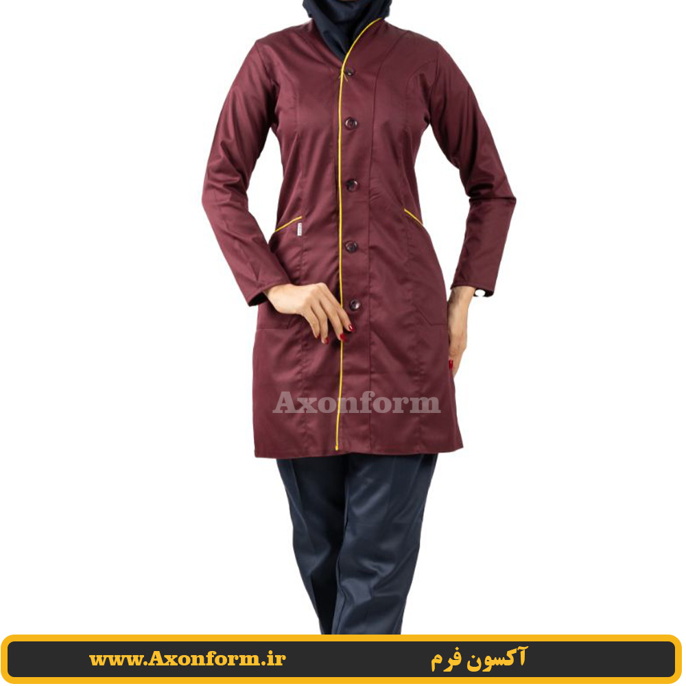 خانهمانتو وشلوار اداری مانتو کار زرشکی زرد مدل صبا کد10